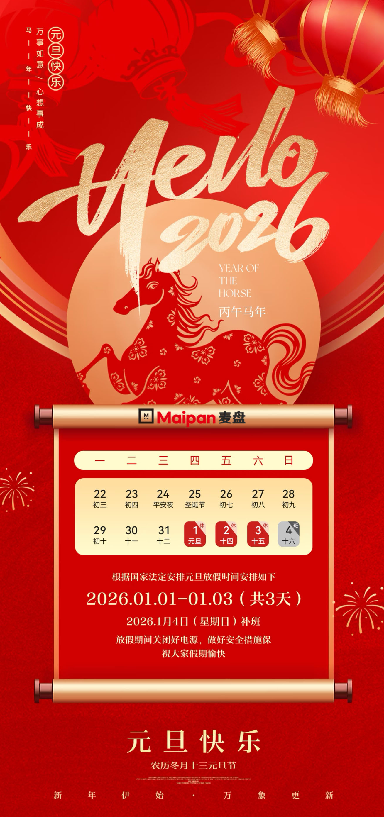 根据国家法定节假日安排,结合公司实际情况,现将2026年元旦放假安排通知如下: